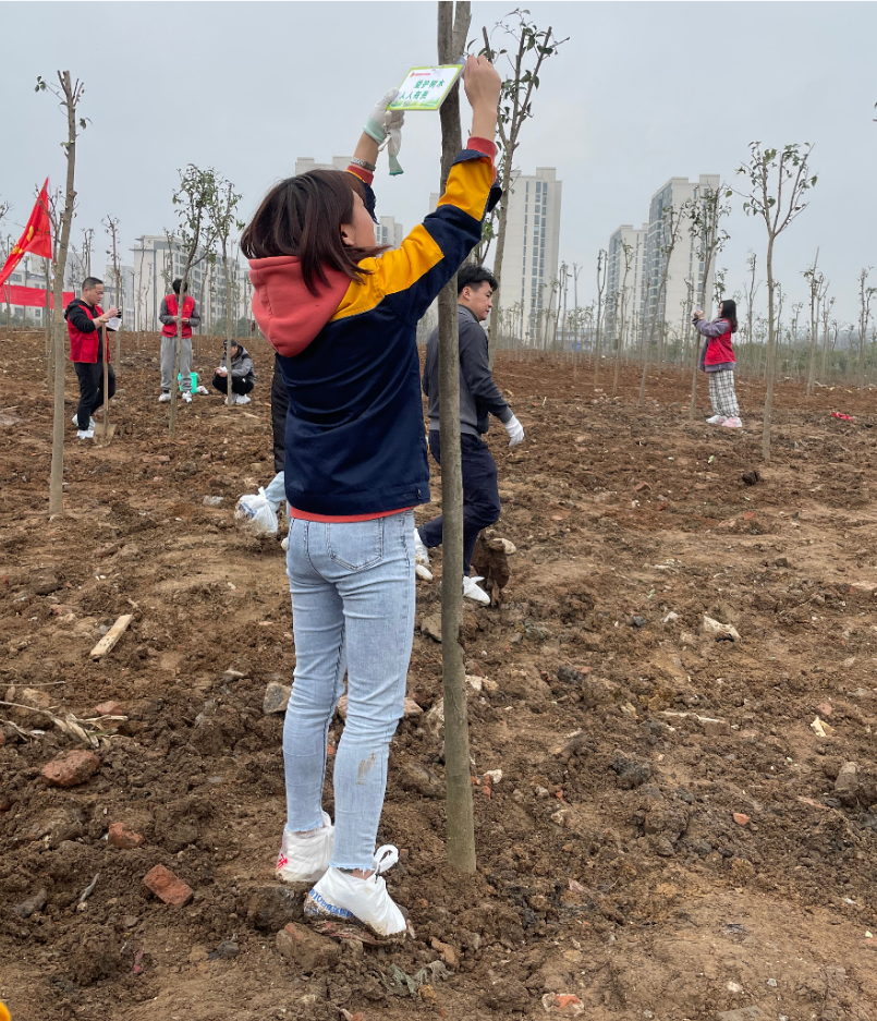 經(jīng)過大家近2個小時的努力,新栽種的樹苗一排排整整齊齊,棵棵挺立,放眼望去,煥發(fā)出勃勃生機。