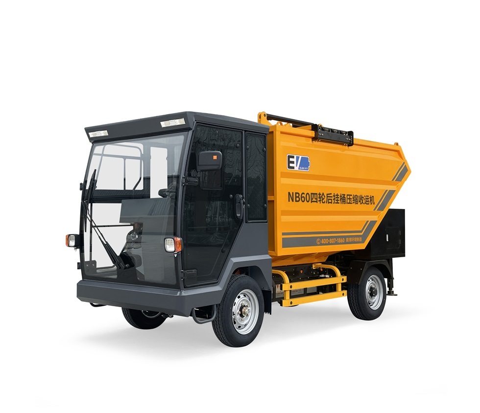 南博 NB60 四輪后掛桶壓縮收運機,是一款全自動機械化垃圾收集車,車身采用流線造型,線條流暢,堅固耐用,新穎美觀,后置掛桶機構只需一人操作即可完成垃圾收集、裝卸,極大降低了人工成本。內置液壓刮板,配備撐地油缸,增強作業穩定性。配備電子助力系統,轉向更輕便,隨走隨停,方便靈活。
